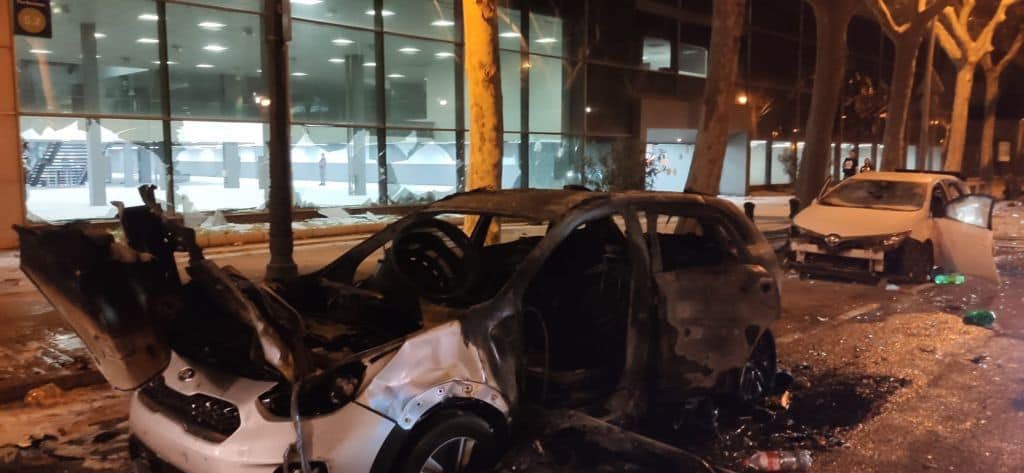 Furts, Robatoris amb violència, danys en vehicles de propietat privada, danys en vehicles policials de GUB, dos vehicles Policials de GUB cremats.